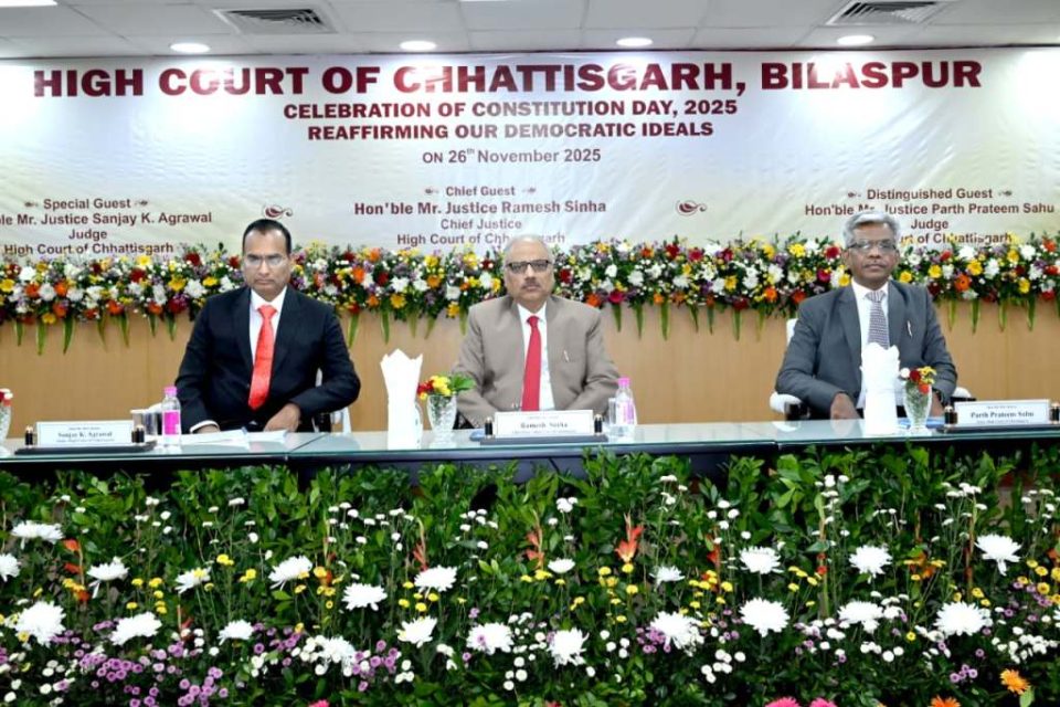 छत्तीसगढ़ हाईकोर्ट के यूनिटी हॉल ऑडिटोरियम में बुधवार को संविधान दिवस पर कार्यक्रम आयोजित किया गया। संविधान दिवस 2025: हमारे लोकतांत्रिक आदर्शों की पुनर्पुष्टि- थीम पर आधारित इस कार्यक्रम में न्यायपालिका की संविधान व न्याय सिद्धांतों के प्रति निष्ठा को रेखांकित किया गया।
