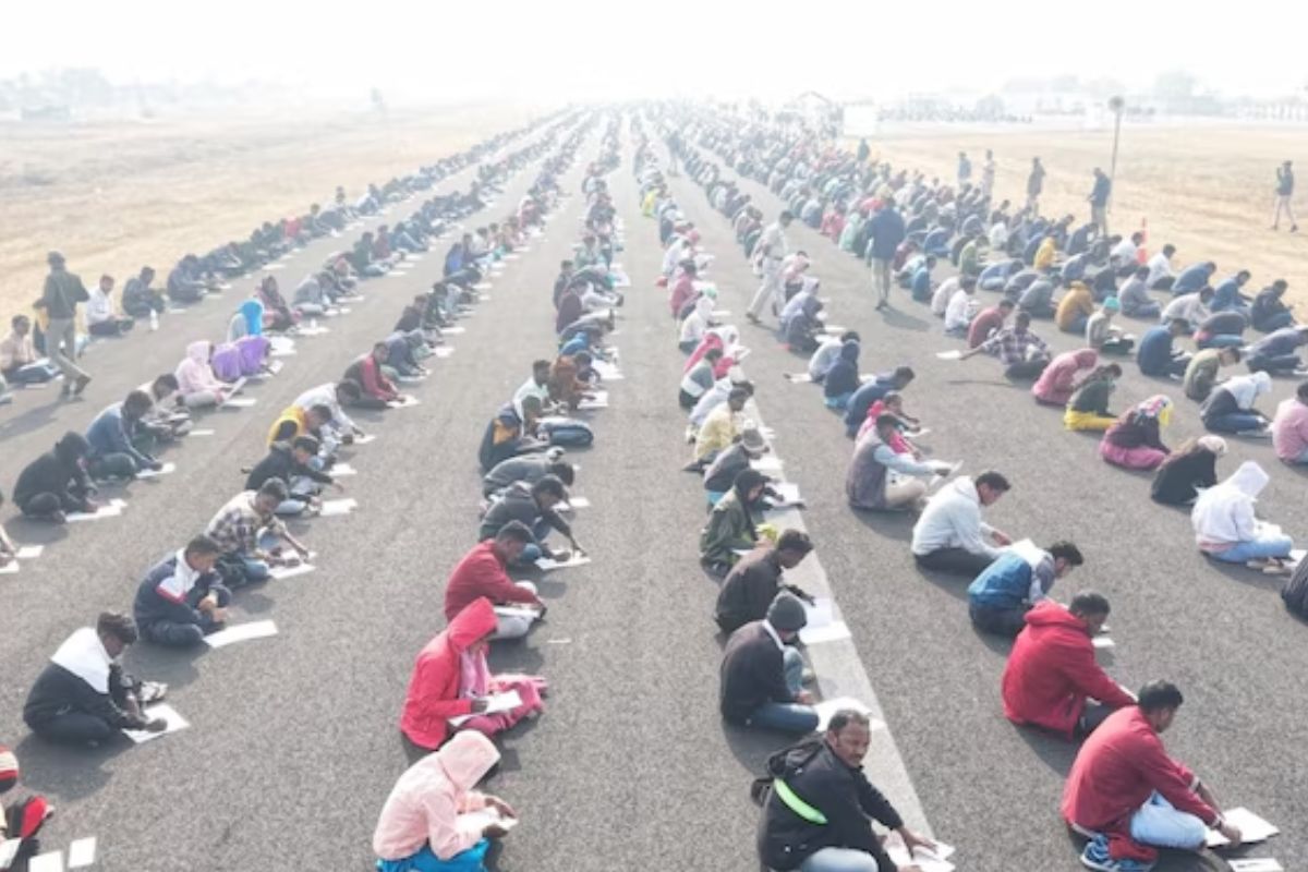 पेपर देने पहुँचे 8 हजार बच्चे, हवाई पट्टी पर बैठकर दी परीक्षा
