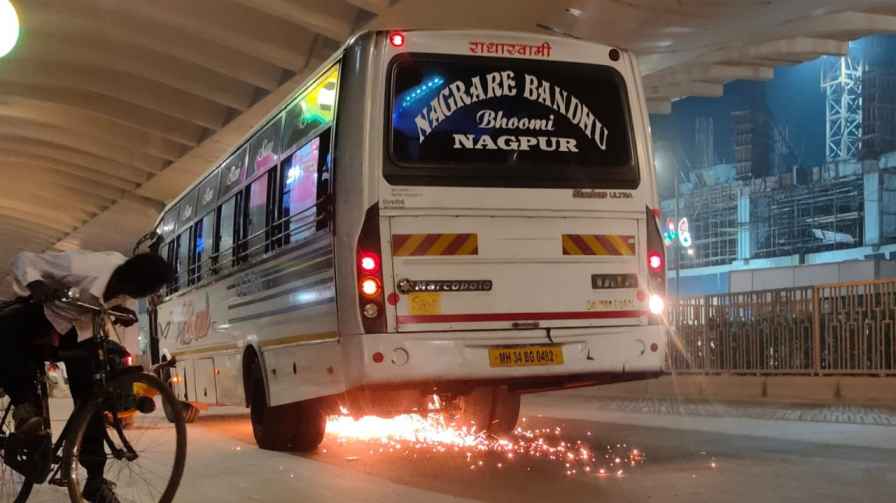 जैसे ही बस रुकी और ड्राइवर ने रेस दी, चिंगारियों की बरसात होने लगी। मौके पर मौजूद लोगों ने जब इंजन बंद करने की सलाह दी, तभी जाकर चिंगारियां निकलना बंद हुईं।